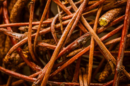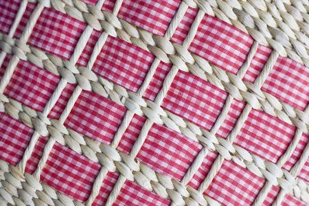 Red braided rattan texture closeup. Abstract background and texture for design.