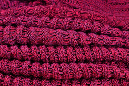 closeup red knitted woolen fabric texture background