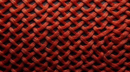 a photo showcasing the texture of red yarn, reminiscent of infinity nets, with a dark orange hue. the symmetrical grid pattern adds a unique touch to these unconventional materials, resulting in luxurious wall hangings. captured using a hasselblad 1600f, this image beautifully highlights the use of traditional japanese artistic techniques. ai generated