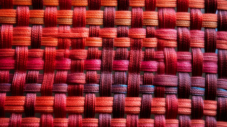 Close-up shot of a red and gray woven texture displaying intricate patterns, the fiber details and craftsmanship. ideal for textile design inspiration, background textures, and pattern studies. Generative AI