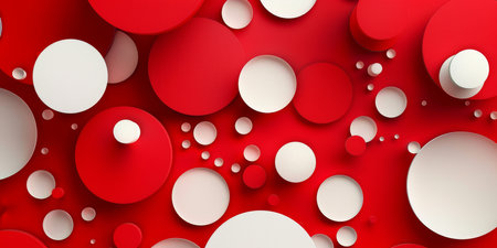 Vibrant red and white circles combined creatively to form an engaging and lively modern design aesthetic