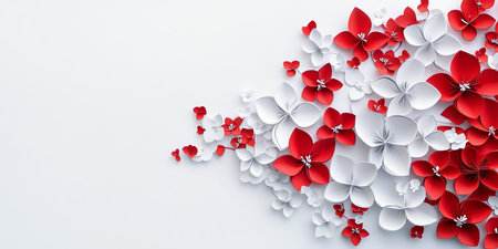 This is a stunning and captivating composition featuring layered red and white floral designs, which showcases intricate cutout patterns, as well as delicate textures that enhance modern decor