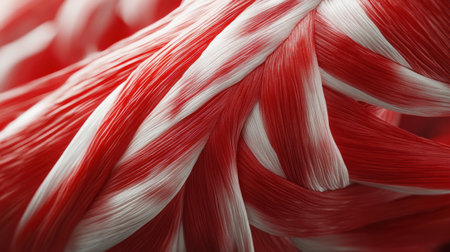 This close-up showcases the striking details of a red and white muscle, revealing its complex structure and unique fiber arrangement.