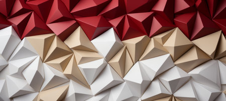 a futuristic 3d background with geometric shapes in shades of red, gold, white, and green colors