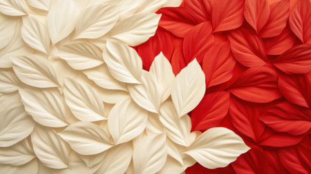 Intricate composition of layered leaves in vibrant red and soft white, creating a visually stunning texture ideal for backgrounds in art or design projects.