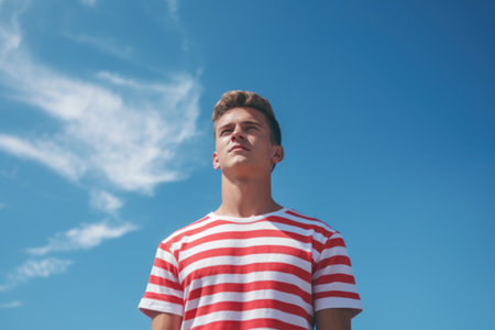 independent expression of the Patriot's Day concept. boy in makeup association with the American flag. 11 september