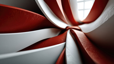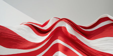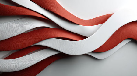 This abstract image showcases dynamic wavy layers of red and white paper, creating a striking modern artistic background. Ideal for creative projects.