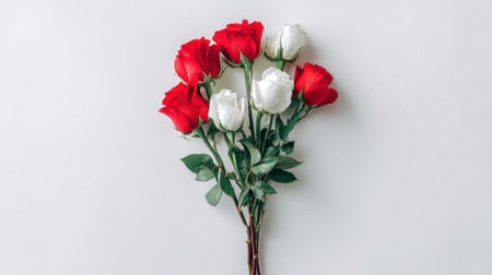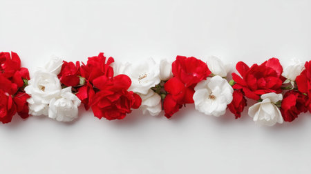 A captivating arrangement of red and white flowers beautifully presented on a clean white background, ideal for decoration or creative projects celebrating love and joy.