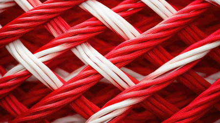 AI Generated. Abstract Red and White Wavelike Fabric Design