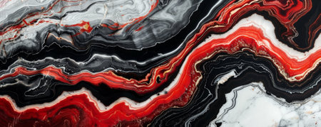 Marble abstract background showing a striking combination of black, red, and white. The bold veins create a dynamic and dramatic effect