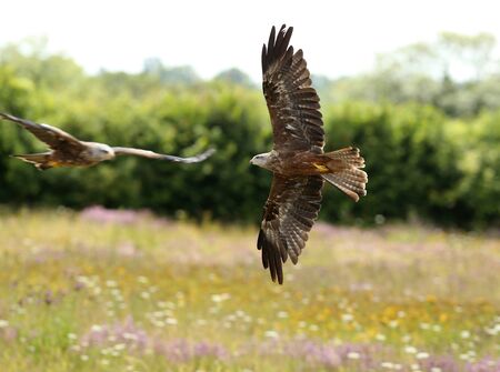 Close up of two Black Kites in flight