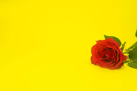 Rose, red on a yellow background. Postcard with place for text. copy space