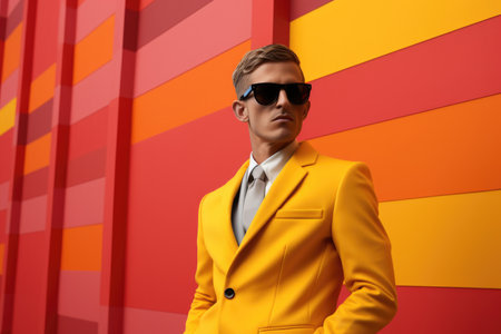 A man wearing a yellow suit and sunglasses. Generative AI image.