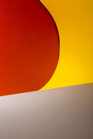 Creative abstract yellow, red and gray color geometric paper compositon background, top view