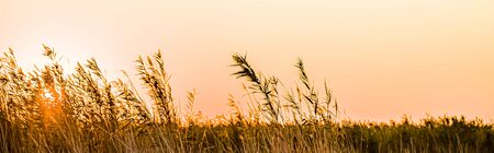 Beautiful sunset in the meadow with reeds. Nature background