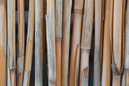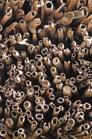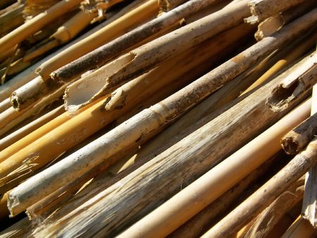 Dry cane stalks closely spaced. Background from yellowed reeds.