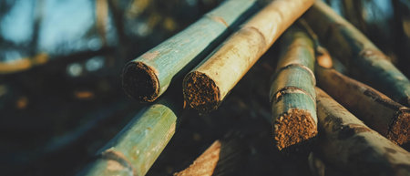 Piles of young and small pieces of bamboo that will be processed into bamboo handicraft products in the cottage industry becomes an attractive background