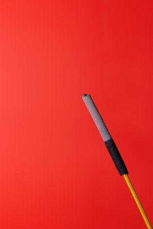 incense stick on a red background with copy space for your text