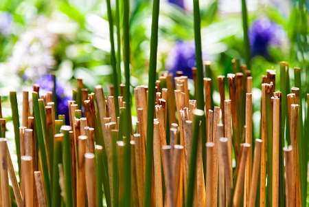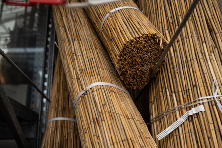 Bamboo sticks for sale in a market, closeup of photo