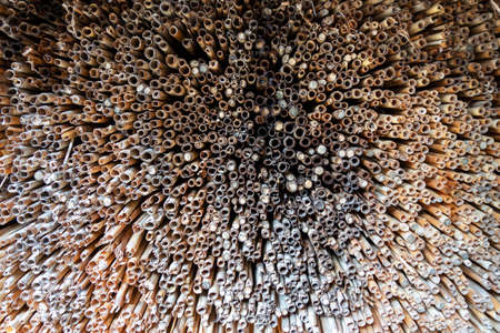 Close up of dry reed wall texture background. Nature background.
