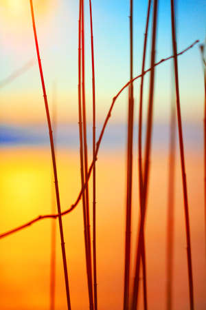 Dry reeds in orange colors and blurred background