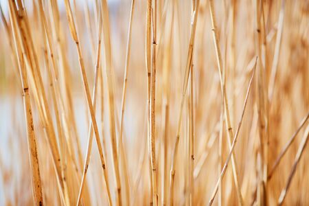 Dry reeds texture. Organic nature wallpaper of yellow cane.