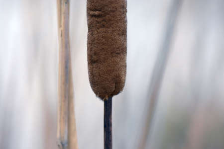 Dry flower of Typha (Typha latifolia) close-up on blurry background. Reminds me of a Churchill cigar