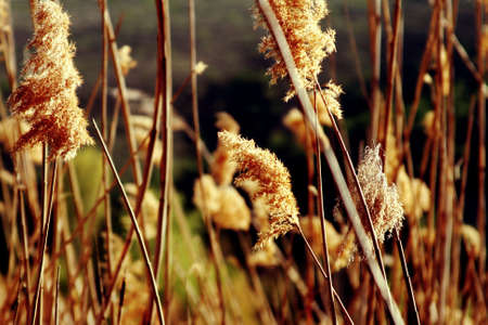 Reed plants in the field. Beautiful nature background. Vintage tone.