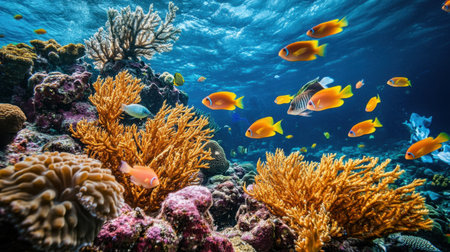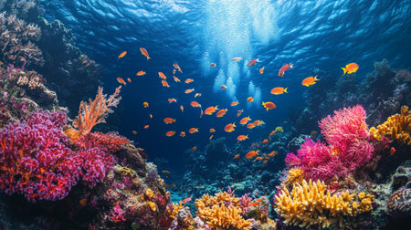 Vibrant coral reef teeming with fish and corals in the underwater world