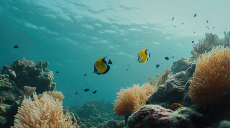 Exploring the vibrant and diverse underwater coral reef ecosystem in the tropical marine life of the ocean. Showcasing the colorful aquatic scenery. Biodiversity. And habitat for various fish