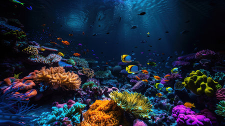 Colorful coral reef underwater, marine life ecosystem background