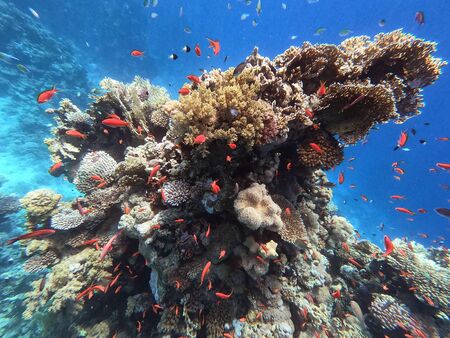 Coral reef and fish in the Red Sea. Seascape.