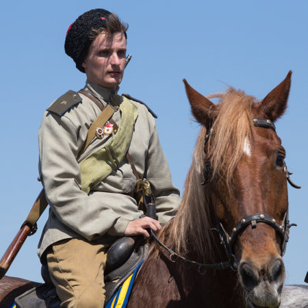 POKROVSKOE, SVERDLOVSK OBLAST, RUSSIA - JULY 17, 2016: Historical reenactment of Russian Civil war in the Urals in 1919. Soldier Of The White Army