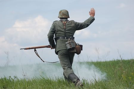Kiev, Ukraine - May 09, 2018: Man in the form of a Wehrmacht soldier at the historic reconstruction on the anniversary of victory in the Second World Waraa