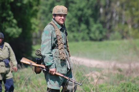 KIEV, UKRAINE - MAY 8 : Member of Red Star history club wears historical German uniform during historical reenactment of WWII on May 8, 2011 in Kiev, Ukraine
