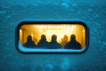 Winter train journey with frosted glass