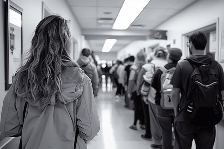 People waiting in line at a hospital for medical assistance during busy hours