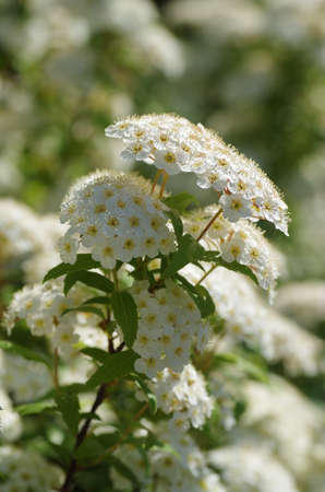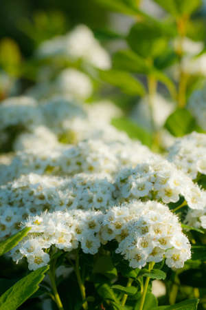 White flowers bush Spiraea in the sunlight