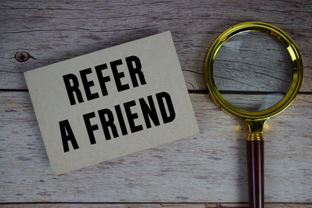 Refer A Friend text written on paper with magnifying glass
