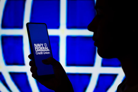 April 6, 2022, Brazil. In this photo illustration, a woman's silhouette holds a smartphone with the Credit Karma displayed on the screen