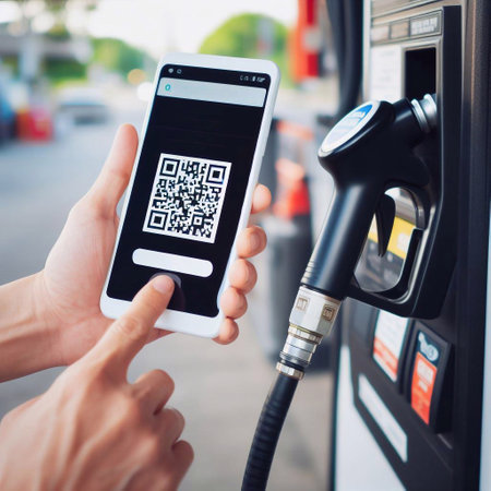 A vivid close-up depicting the hands of a gas station attendant wearing gloves for safety,