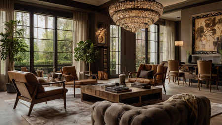 Luxury living room interior design with leather sofa and coffee table
