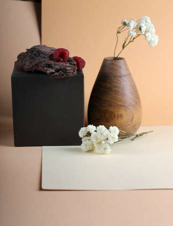 Abstract background with bark tree podiums for products presentation or exhibitions. Concept for natural eco organic bio cosmetic beauty product with copy space