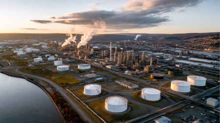 Industrial area featuring oil refineries and chemical plants, highlighting the infrastructure and operational complexity with this inviting photo.