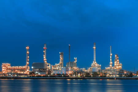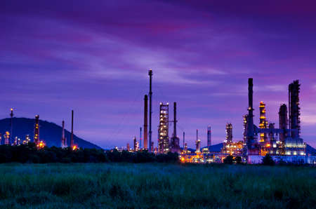 Oil Refinery factory at twilight , petrochemical plant , Petroleum , Chemical Industry