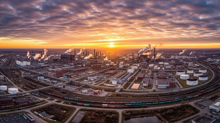 Industrial area featuring oil refineries and chemical plants, highlighting the infrastructure and operational complexity with this inviting photo.