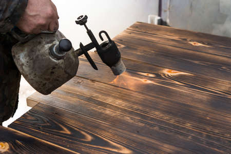 Working with the gas burner for burning wood and artificial aging