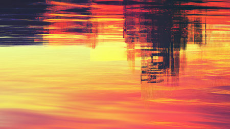 Lone figure before an epic sunset reflected on calm waters. A powerful reflection of solitude and the grandeur of nature. Concept of self-discovery, reflection, and vast horizons. Digital art
