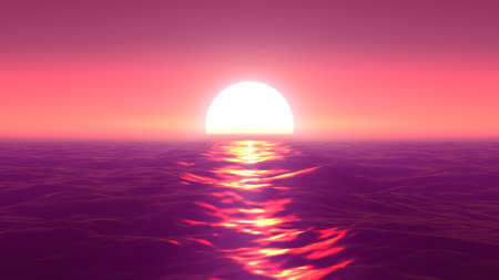 Sunset over the sea with reflection in water. 3d render
