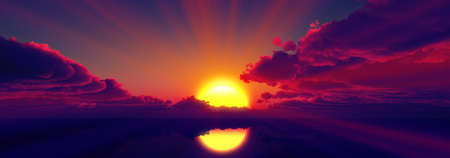panorama of the ocean sunset, sea sunset, 3d render illustration
